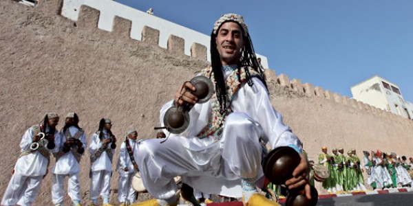 Essaouira is a picturesque fishing town of 70,000 inhabitants on the Atlantic coast which each June on a Thursday-Sunday weekend swells and pulsates with over 450,000 festival revelers. Essaouira has long been a fabled counter-culture destination; port of call for assorted Rolling Stones, Jimmy Page, William S. Burroughs, Maria Callas, it\'s where Jimi Hendrix reputedly wrote \"Castles Made of Sand,\" and where Orson Welles filmed his cinematic \"Othello.\" The Gnaoua are deeply rooted in Essaouira, one of their centers.