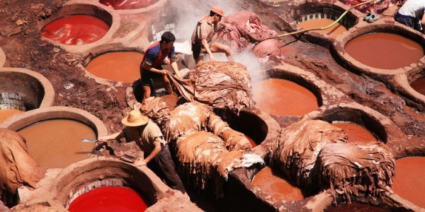 TannerieThe tanneries quarter is one of the most striking sites in the Medina. Here, medieval tanneries are used to treat leather with little change from the process used in the sixteenth-century, when Fez took over from Cordoba as the leading leather producer. There is a fascinating rotation of colours in enormous honeycombed vats – yellow for turmeric, red for puppy, blue for indigo, green for mint and black for antimony. Barefoot workers in shorts pick up skins from the bottom of the dying vats and then work them manually. Skins are then spread out to dry on the rooftops.The tanneries are open for tourists, with an admission fee of 10dh. The best time to visit is during the morning as there is most activity. To get the best view of the whole process, and avoid the terrible stench, get a view from the terraces overlooking the vats.