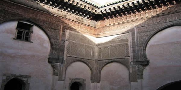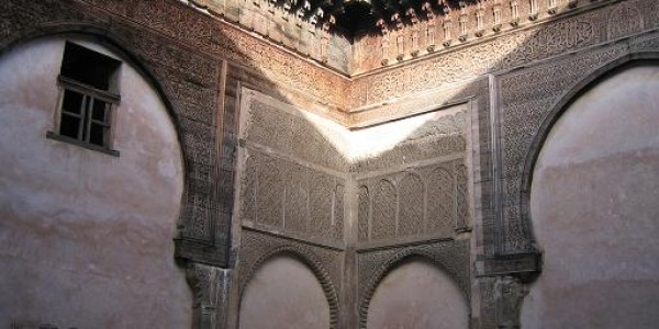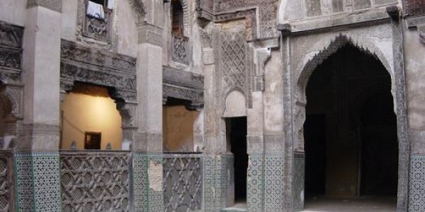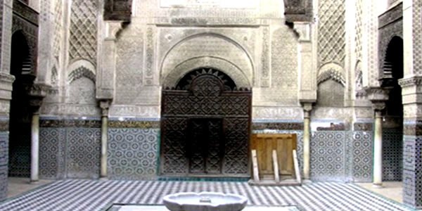 The Madrasah al Atarin Built between 1323 and 1325 during the reign of the Merinid Sultan Abou Saïd, many consider this to be the most beautiful Medersa in Fez. From its bronze double-doors to its interior courtyard encircled by fine marble and alabaster columns, from its cedar wood awning to its white marble ablutions fountain with its zellij rose motif, the Medersa is a true masterpiece art treasures of Merinid. The roof of the madrasa provides an interesting perspective on the inner courtyard of the mosque Karaouiyne neighbor, and allows to observe life on the terraces of the city.