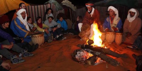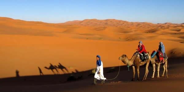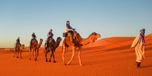 Overnight camel rideour overnight camel ride Begin in the evning two hours before the sunset, We will meet you at front your riad or hotel in the desert at5:30a.m.depending on the sunset timing). Depart in the afternoon for a thrilling desert camel ride over the golden sand dunes, deep in the heart of the desert to see the surprisingly beautiful Sand dunes with its playful fusion of light and shadow, during the color parts of the evenings at the sunset .you will have several photo-stops during an exciting camelsafari to the first destination the big dunes.A fabulous view of the sun setting over the desert dunes ,We stop to watch the beautiful sunset ,are some of the memories you will cherish from the camel safari. continues across the desert to our reach our desert camp, where a traditional Berber welcome awaits each of you. Enjoy the true Berber ambiance, at this typical Nomade campsite, with traditional berber carpets, low tables and cushions for comfortable seating. At the desert camp,where an authentic spicy Berber tagine is being prepared over an open fire by nomade tents. We'll have a chance to explore this magnificent desert landscape - if you're feeling energetic you can climb the dunes for sunrise or sunset to watch the light and colour of the sands change. As the stars come out you can often hear the rhythmic beat of tribal drumming carried on the still night. Camel safari may not be the most comfortable means of travelling for some, but it is undoubtedly a 'must' for every traveller as a way to experience the mode of transport of the Berber nomads of the Sahara. Wake early in the morning to climb a dune and wait, in the pre-dawn stillness, for the sun to rise across a desert landscape. Return for breakfast and shower on the hotel .