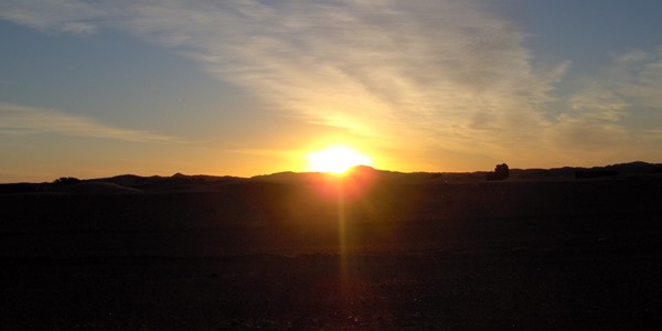 sunrise jeep safariThis tour Begin in the mourning two hours before the sunrise, We will meet you at front your riad or hotel in the desert at 5:30a.m.depending on the sunrise timing). departs in the Mourning head east into the Sahara on basic 4x4 off-roads across the desert of Erg chibi with several photo-stops, passing first through rocky terrain then progressively entering sandier landscapes during an exciting dune drive to the first destination a nomads camp use to graze their herds of camels, visit one of the families who live in hand-woven goat and camel hair tents.Continuing deeply in to the desert having great fun sand bashing through the sandy river, our way is following over the magical sea of orange dunes and contrasting spaces of black shiny volcanic rock. Well crossing all uvial fans, ridges, dry river basins, and sandy areas , abondan village of M'fis and the khamlia village of black people, descendants of slaves from Sudan and Mali, who founded the famous music of Gnawa , The drive continues across the desert. We stop to watch the beautiful sunset on the like sirji on road to our hotel .