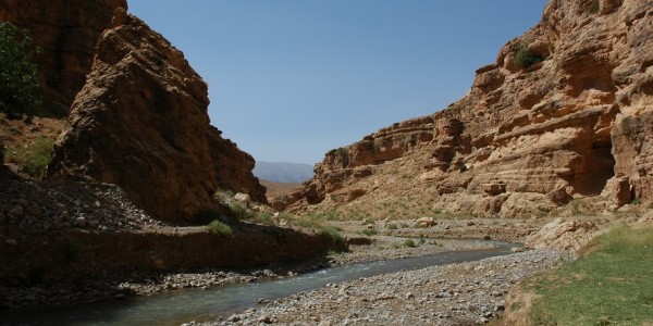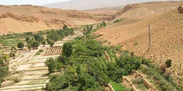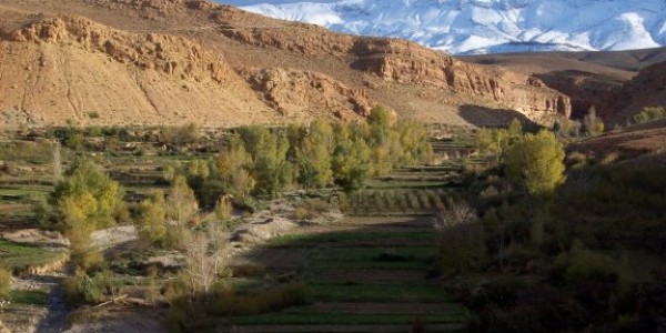 Valley Flilou is Crops are arranged in terraces, water fed by irrigation canals. The seguias. Diverting the water of the river upstream.