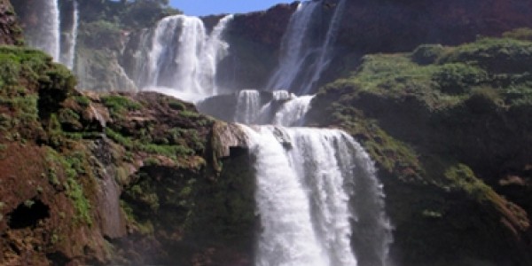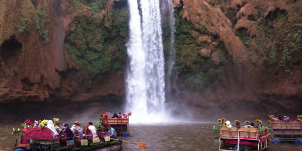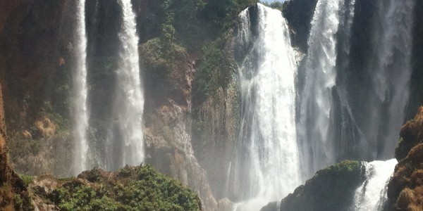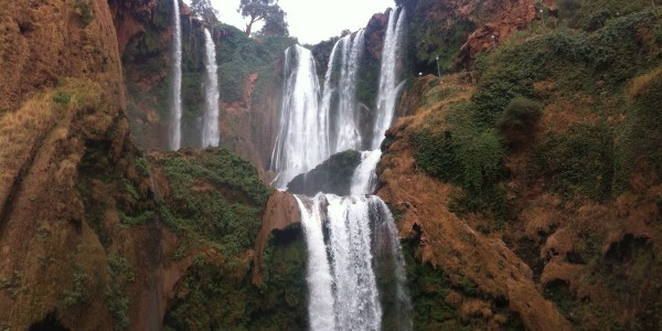 The Ouzoud Waterfalls are a complex network of plunges that cascade into one another through a series of drops. The view from the top is powerful: the water drops spectacularly some 110 metres into the canyon of the river below.